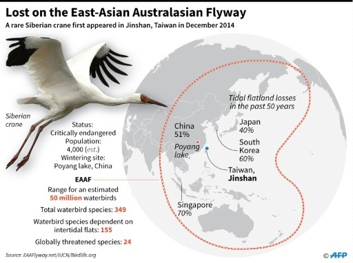 シベリア(繁殖) ⇄ 日本(越冬) - 往復距離:約3,000〜4,500km