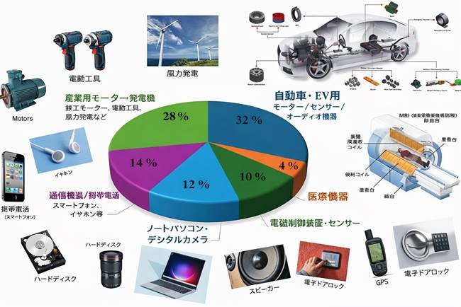 - これが無いと EVモーター、風力発電、スマホ、精密兵器(レーダー/誘導) などの中核部品が詰みます(特に“磁石”分野が急所)。